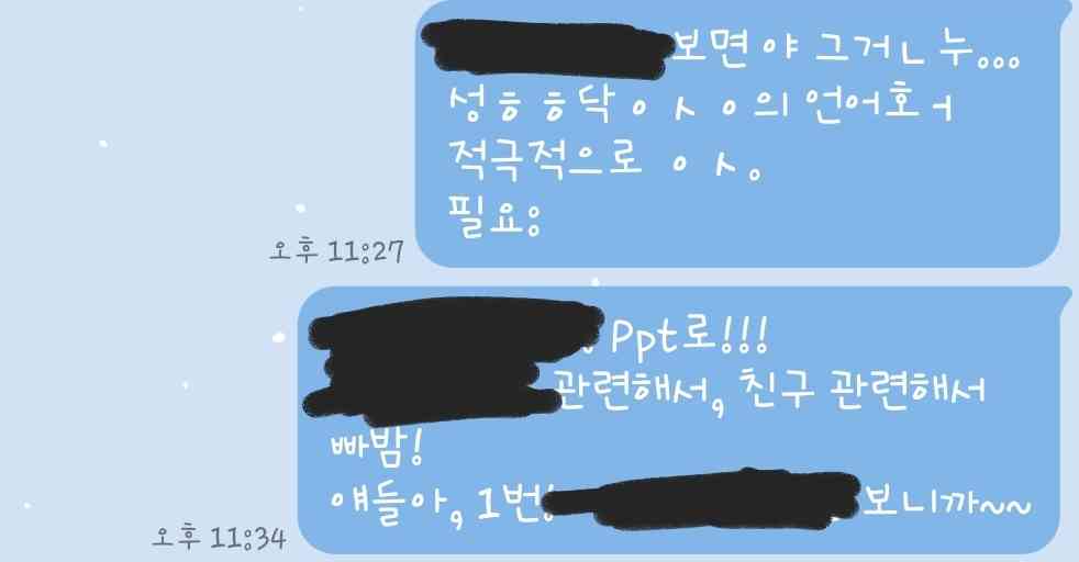사진은 제가 며칠 전에 순간 수업 관련 아이디어가 떠올라 잠을 화들짝 깨서 (비몽사몽) 메모랍시고 나에게 보내는 카톡에 적은 내용인데요...