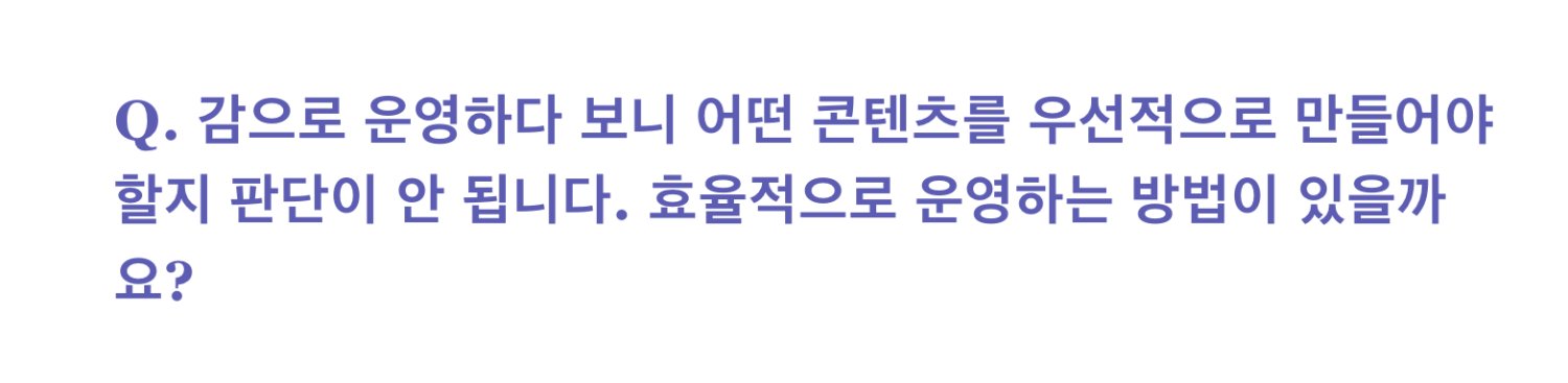 A. 콘텐츠도 마찬가지로 감이 아니라 숫자로 판단해야 실패 확률이 줄어든다고 답변드리고 싶습니다. 이번 편에서 "데이터 기반 우선순위 설정"과 "원소스 멀티유즈"를 이해해보면 좋겠습니다.