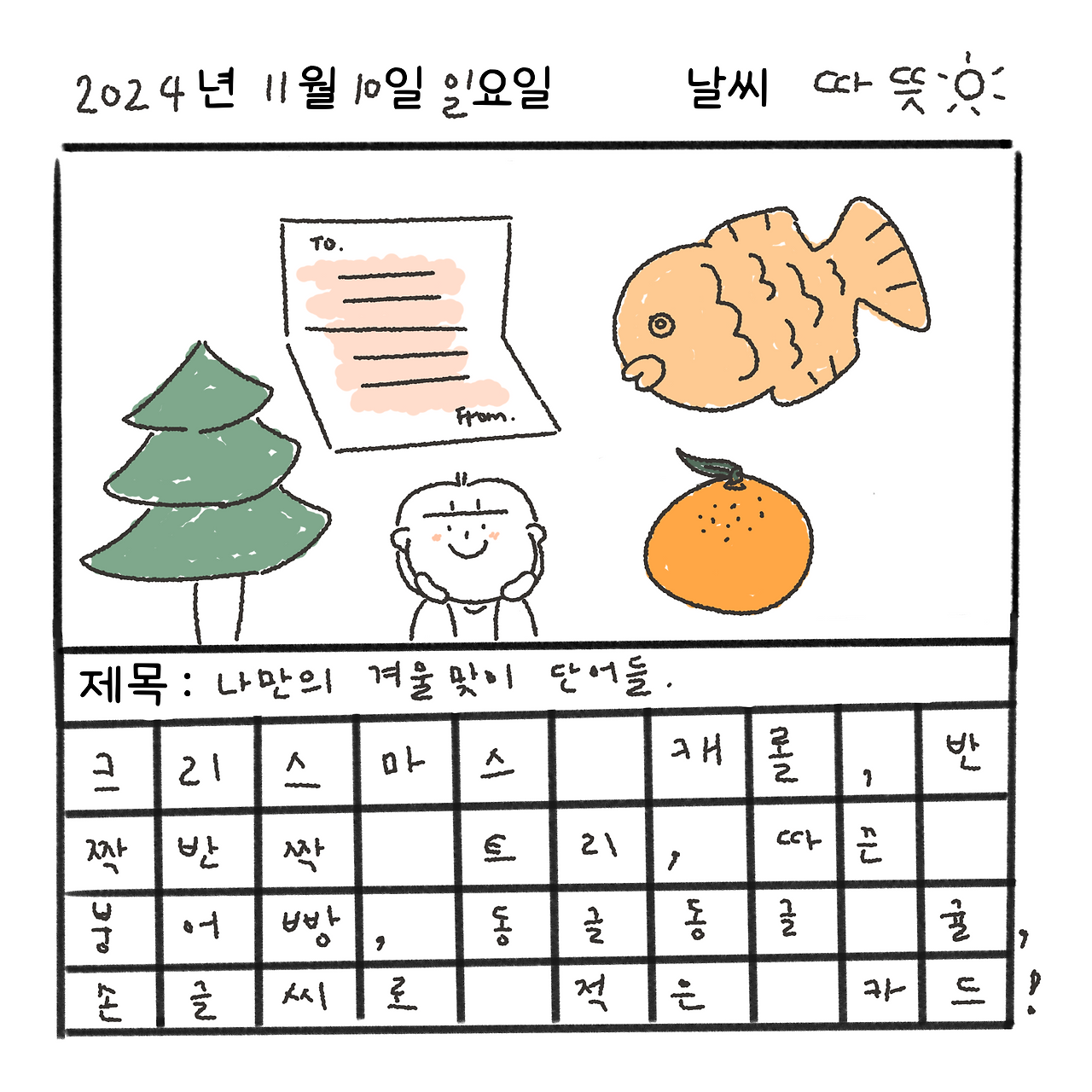 11월 7일은 '입동'이었어요. 설 입(立), 겨울 동(冬), 겨울로 들어선다는 뜻이죠. 입동이라고는 하지만 아직 따스한 햇살이 비추고 곳곳에 예쁜 단풍이 남아있어서인지, 겨울이 왔다는 사실이 실감 나지 않는 것 같아요.
