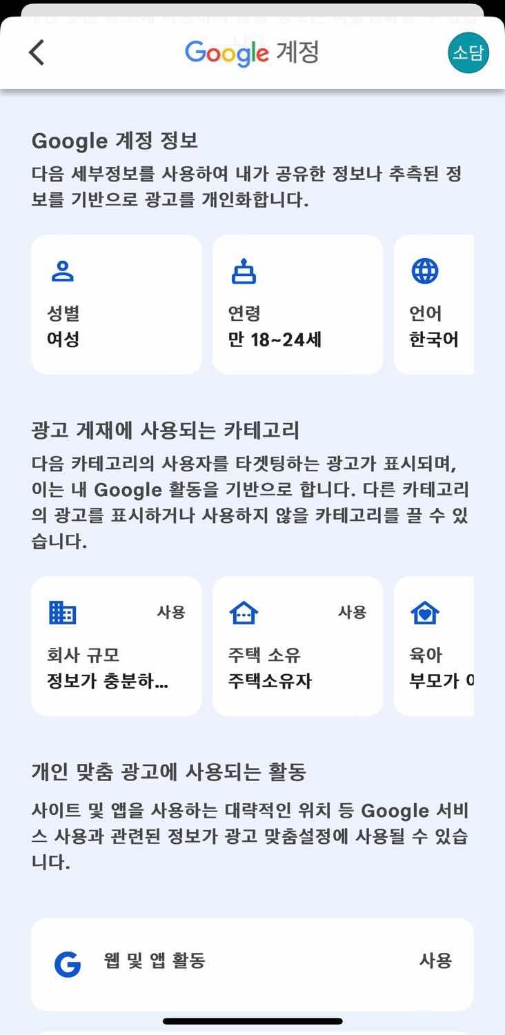 μ΅κ·Ό μ¬λ°λ μ¬μ€μ νλ μκ² λμλλ°μ! ꡬκΈμ λ¨λ κ΄κ³ κ° λμκ² λ§μΆ€νλ κ΄κ³ λ₯Ό 보μ¬μ£Όκ³ μμλλΌκ΅¬μ π«’