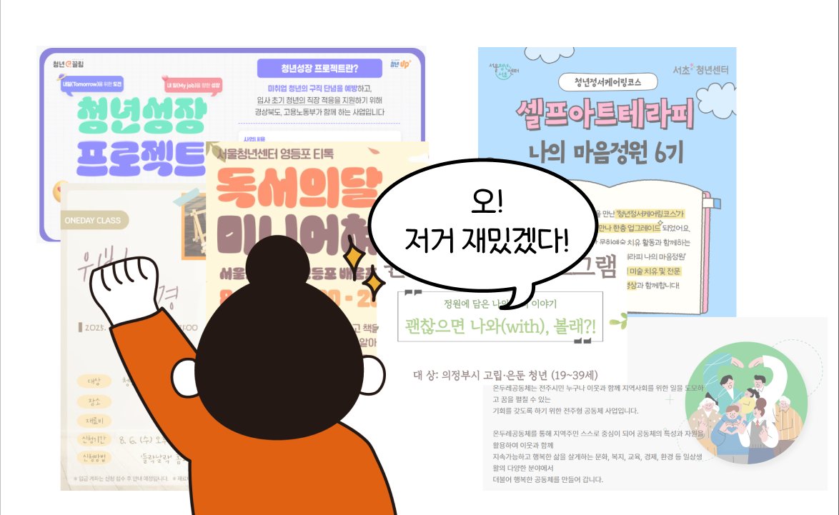청년 우울의 또 다른 큰 이유는 바로 사회적 고립감이에요. 청년 10명 중 1명 이상이 “나는 고립돼 있다”(13.4%), “세상에 혼자 있는 듯하다”(16.6%)고 답했다고 해요(공익위키, 2024,‘청년우울증’) 학교에 다닐 때는 교실, 동아리, 또래 집단처럼 물리적으로 소속될 수 있는 울타리가 있었죠. 하지만 졸업 후 사회에 나오면 이야기가 달라집니다. 새로운 관계를 맺는 건 쉽지 않고, 가족이나 친구간의 관계도 점점 줄어들어요.