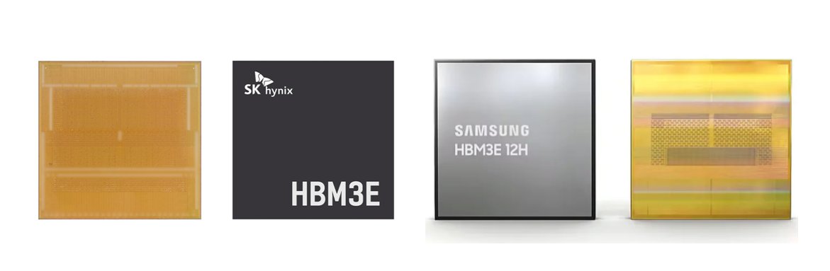 ํ์กด ์ต๊ณ ์ฌ์์ผ๋ก ์๋ ค์ง HBM3E. ์ถ์ฒ: SKํ์ด๋์ค(์ผ์ชฝ), ์ผ์ฑ์ ์(์ค๋ฅธ์ชฝ)