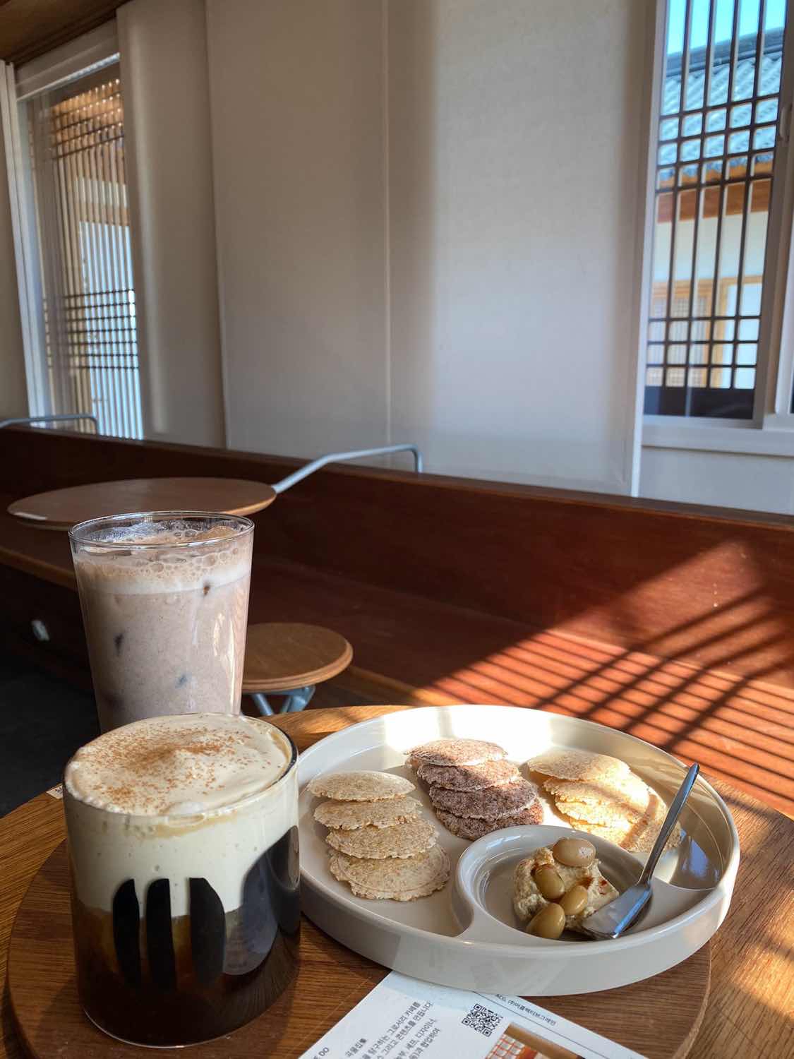 토종 곡물을 활용한 음료와 디저트를 파는 독특한 공간입니다. 작년 초 공주 여행을 계기로 처음 이 카페를 알게 되었는데요. 곡물 크림커피와 그레인 라떼, 토종콩 후무스와 곡물 라이스칩을 먹었어요. (최근에는 라이스칩 대신에 횡성재팥, 공주밤, 고흥 유자를 활용하여 만든 와플이 주메뉴인 것 같군요!)