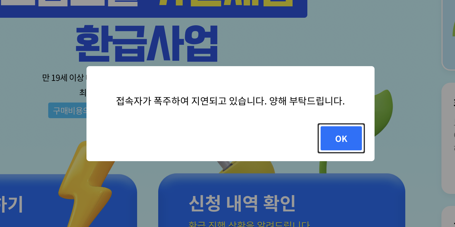 으뜸효율 가전제품 환급사업 시작: 1시간도 안 돼 접속 마비