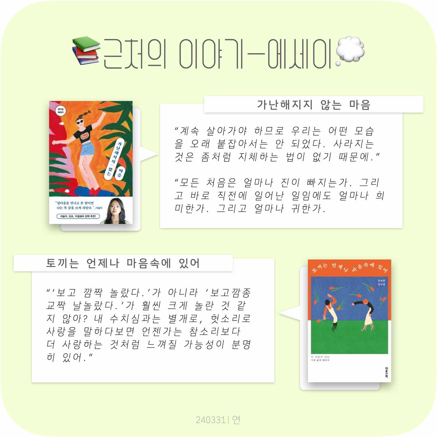 벌써 열 번째 큐레이션이네요! 📚근처의 이야기—에세이💭
