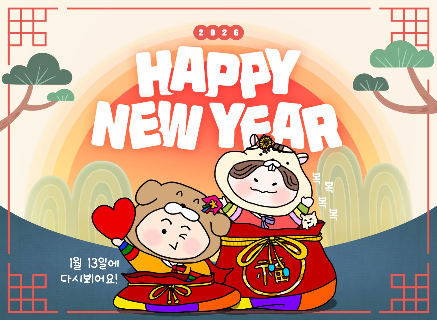 1월 첫째 주 뉴스레터는 쉬어가고, 1/13(화)에 다시 찾아뵙겠습니다.