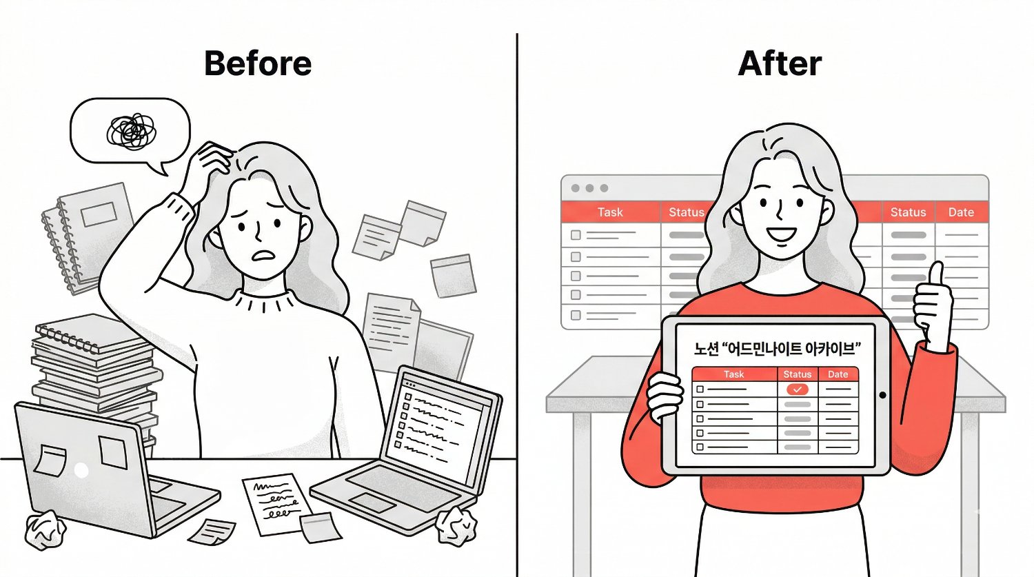이런 상황에서는 ‘올인원 플랫폼’ 노션이 치트키입니다. 흩어져 있는 잡무를 한 곳에 모으고, 어드민 나이트 당일에는 할 일에 집중할 수 있도록 돕는 시스템을 만들 수 있거든요. 이번 아티클에서는 노션으로 어드민 나이트를 성공적으로 완성하는 3단계 가이드를 소개합니다. 혼자 하든, 여러 사람들과 함께 하든, 일주일에 딱 1시간만 집중해서 정체된 생산성을 끌어올려봐요!