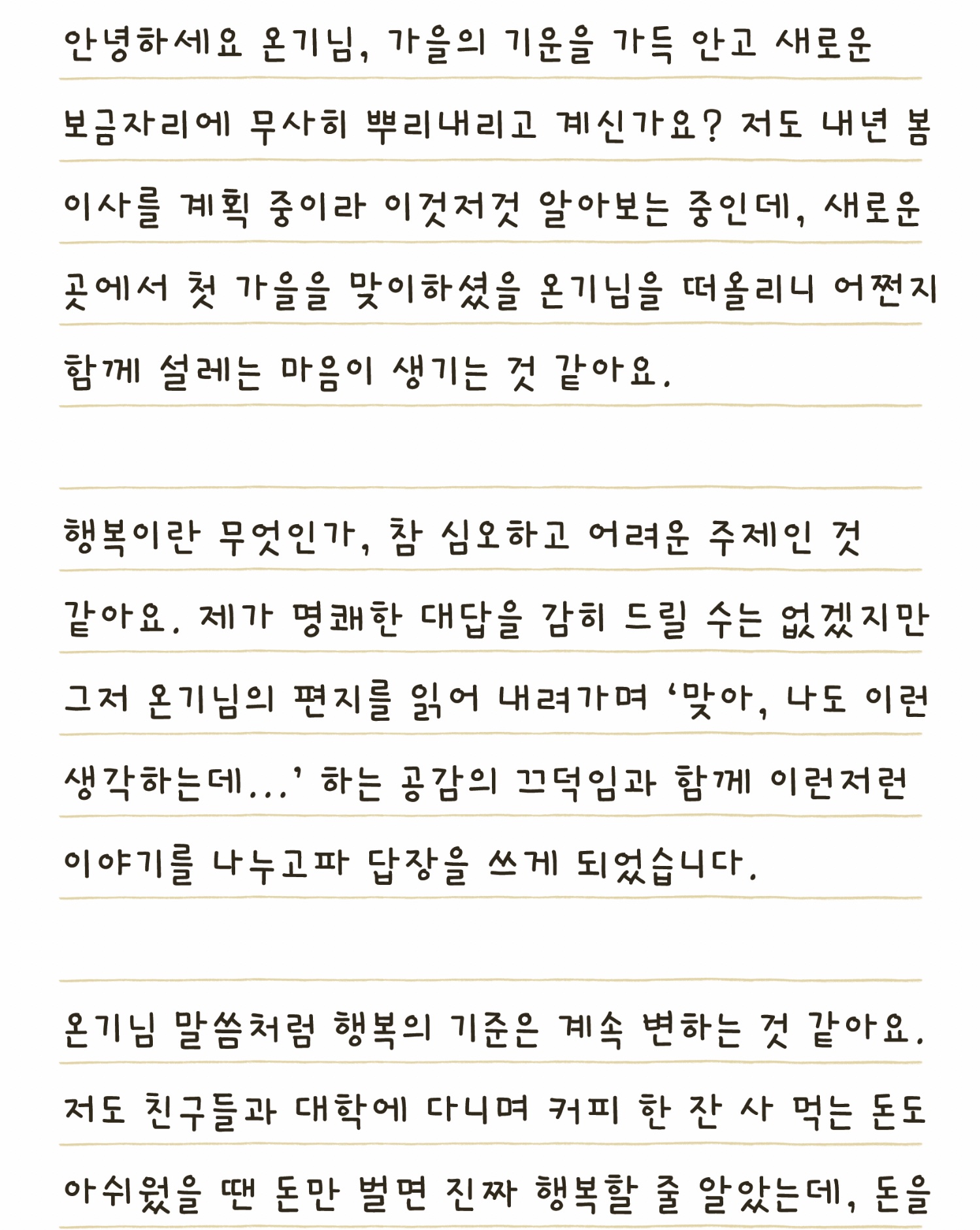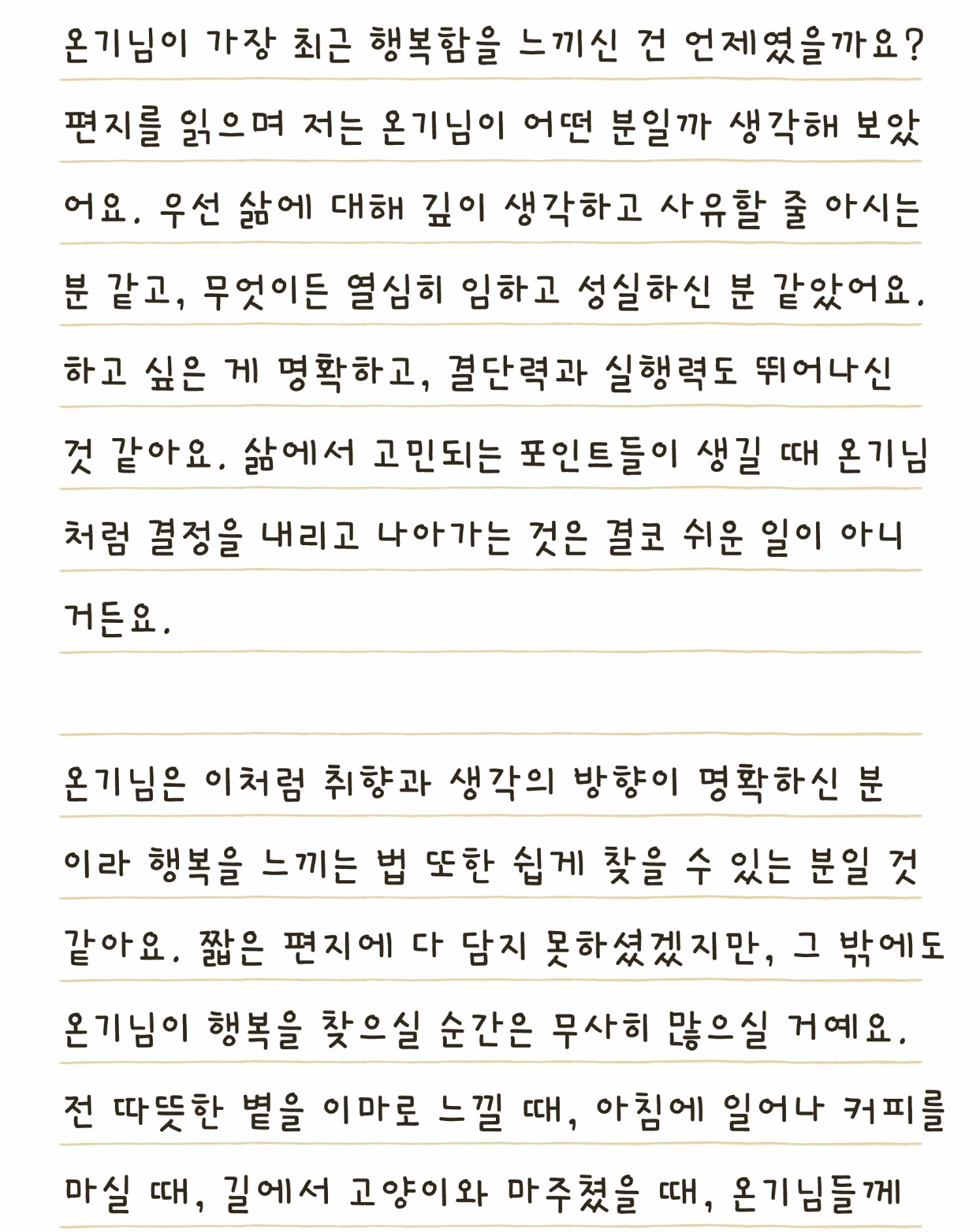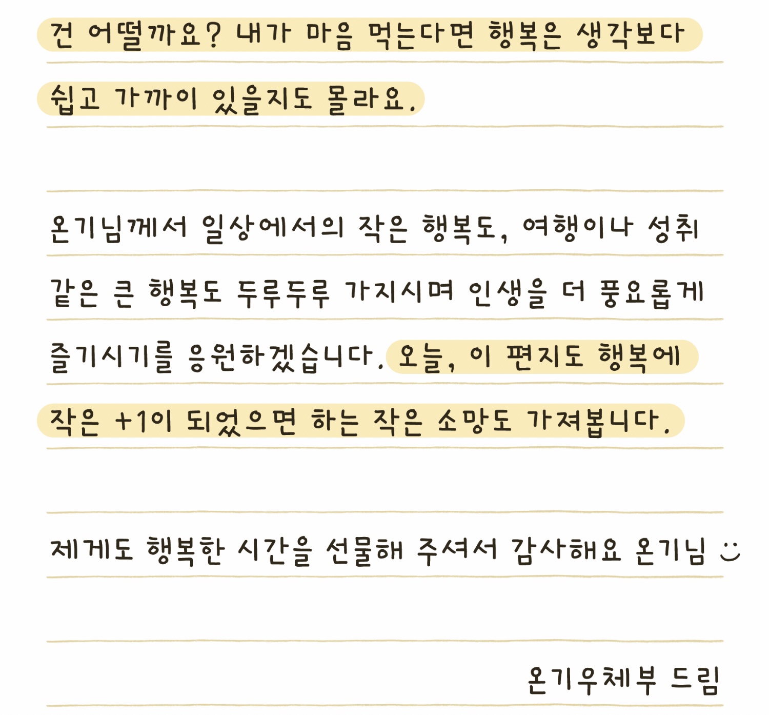 오늘 이 편지가 온기님 행복에 +1이 되었으면 해요.