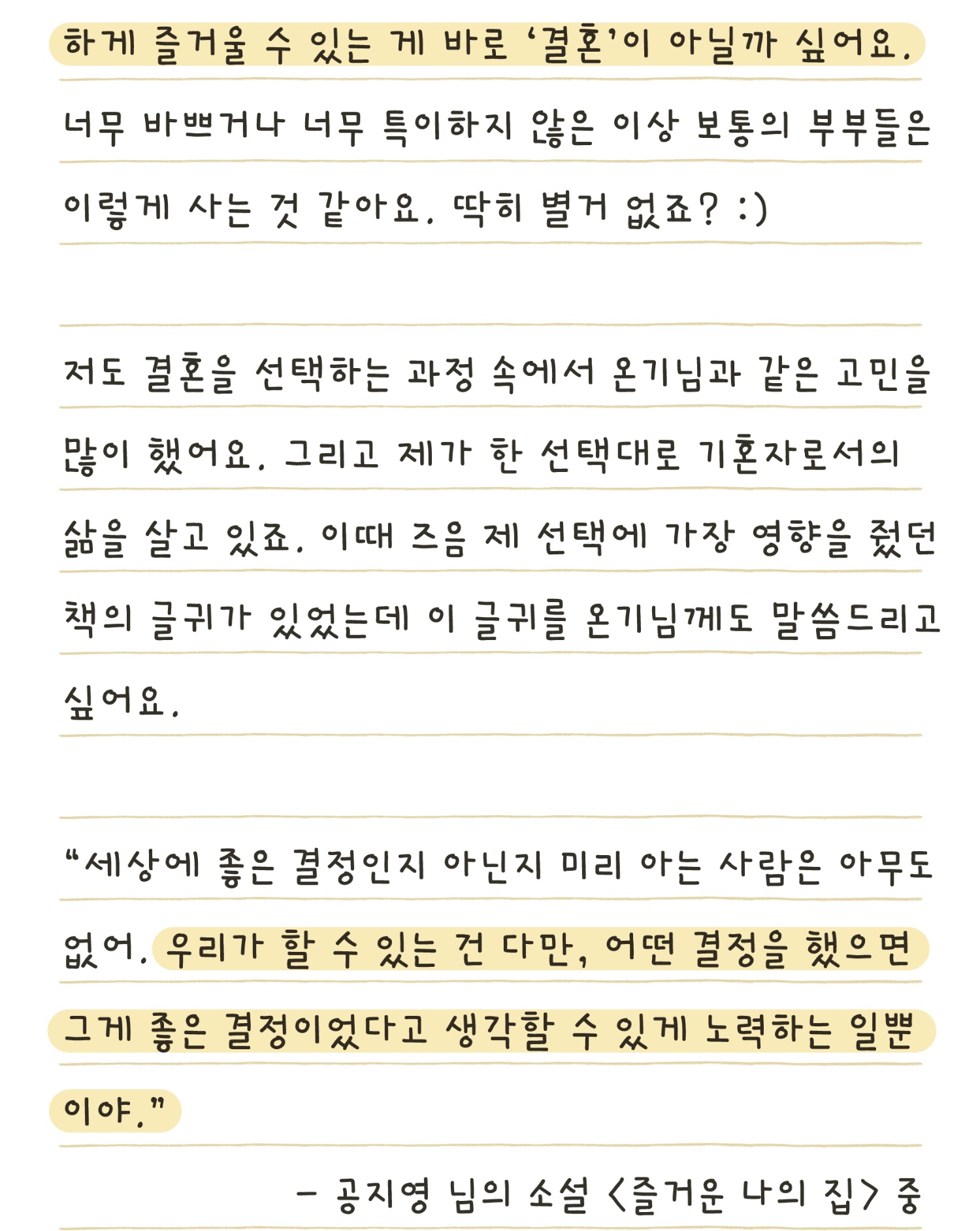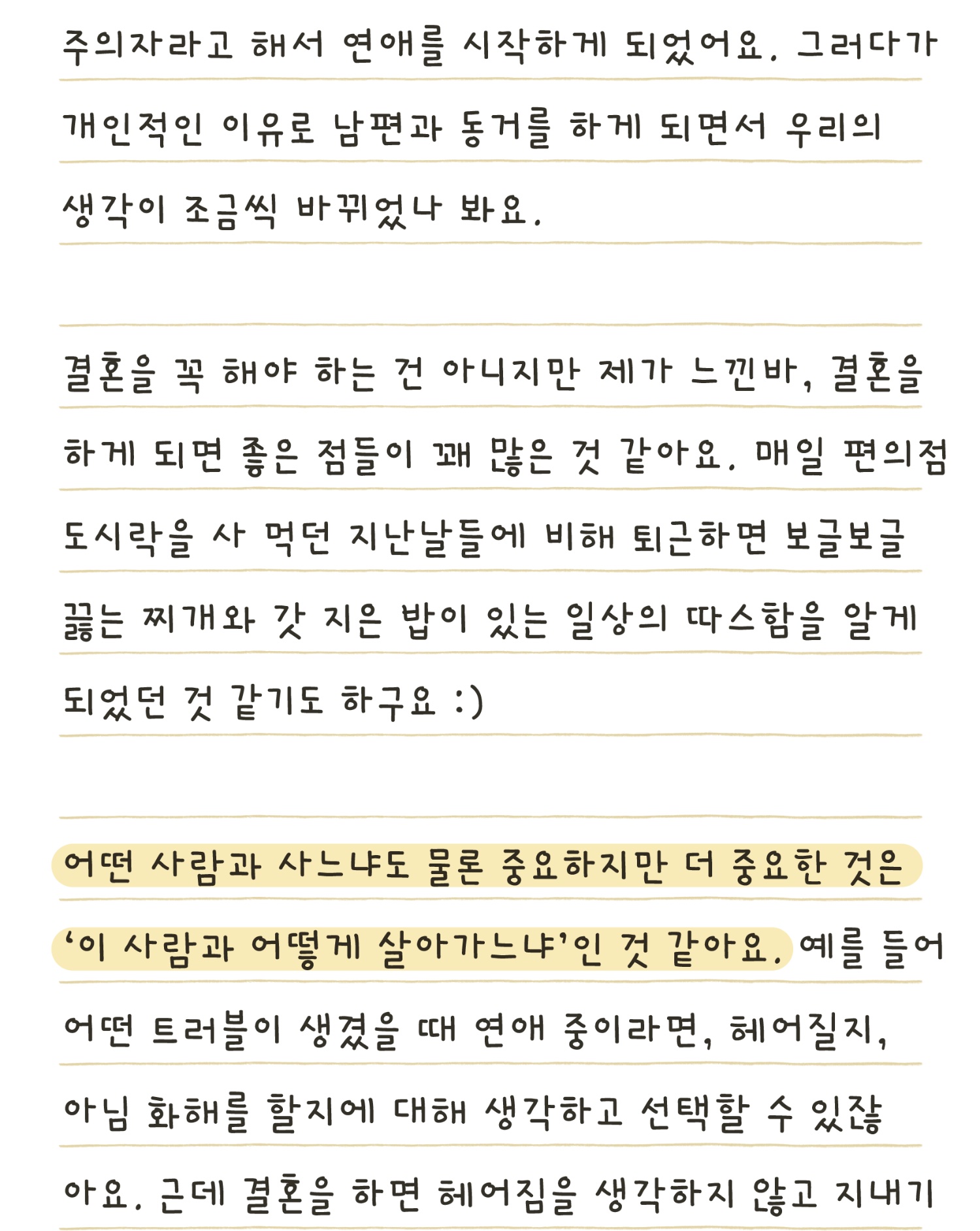 소소하게 즐거울 수 있는 게 결혼인 것 같아요.