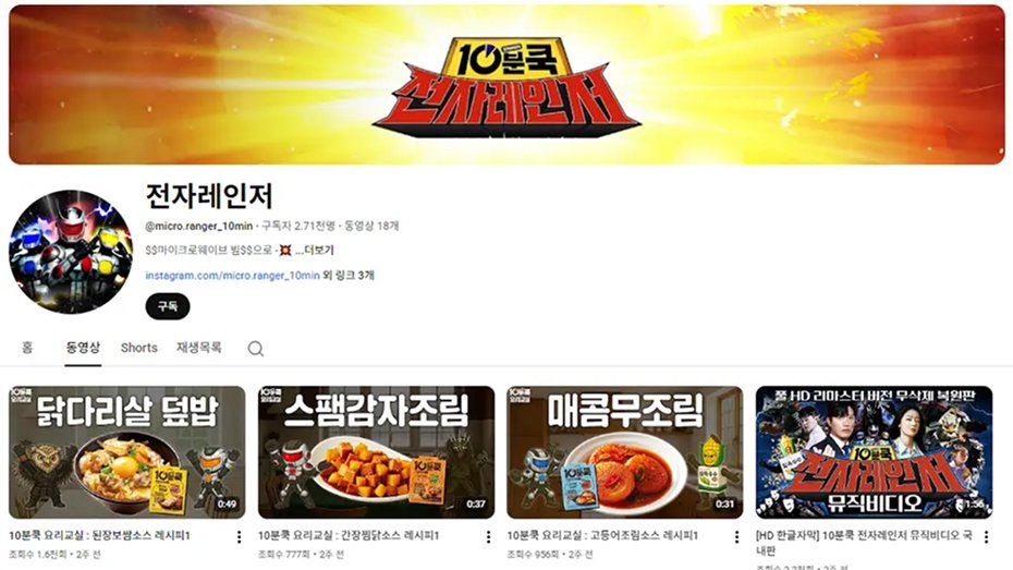 전자레인저'라는 별도의 유튜브 계정에 업로드되는 콘텐츠들도 있습니다. 등장인물들이 '10분쿡 요리교실'이라는 콘텐츠를 직접 만드는 컨셉으로, 작은 전자레인저 세계관을 만들었어요.