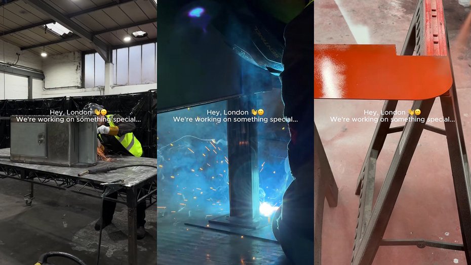 그리고 최근에도 과정 공유 측면에서 눈에 띄는 콘텐츠를 발견했습니다. 'Hey London'으로 시작하는 숏폼 영상은 런던 팝업 스토어를 준비하는 과정을 보여줍니다. 팝업 스토어에서 가장 특별할 것으로 예상되는 부분을 용접하고 만드는 과정을 영상으로 제작한 겁니다.