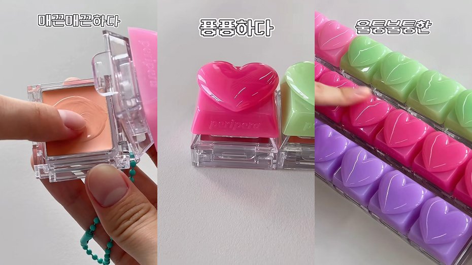 인플루언서 협업 영상 및 고객 UGC 영상에서도 이러한 특징이 명확히 드러납니다. 키캡 형태의 디자인을 딸깍 누르는 모습, '이게 블러셔라고?'라는 멘트는 후킹력 있는 오프닝을 완성합니다.