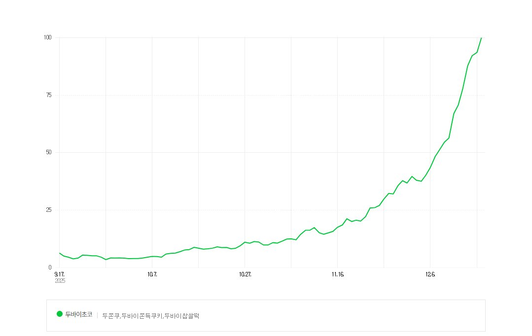 배달의민족에 따르면 11월 9일~12월7일 ‘두바이 쫀득쿠키’가 인기 검색어 상위 10위권에 등장한 것만 27일에 달해요. 실제로 배달앱에서 두쫀쿠를 검색해 보면 인당 구매 제한, 반드시 다른 상품과 함께 구매해야 하는 조건 등이 있음에도 구하기 쉽지 않아요.