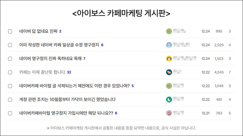 도대체 어떤 상황인 건지, 아이보스 마케터 보스님들의 반응을 살펴봄과 동시에 네이버의 공식 자료 등을 통해 정리해 보고자 해요!