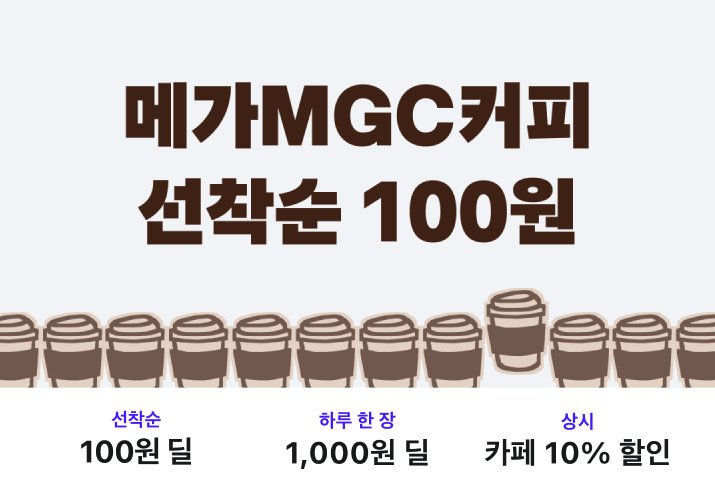 최근 저가 커피 브랜드들 사이에서 가장 많이 보이는 방식 중 하나가 앱 설치를 유도하는 이벤트에요. 메가커피는 배달의 민족에서 "아메리카노 100원" 픽업 프로모션을 진행했고, 무료 쿠폰 이벤트도 적극적으로 펼쳤습니다.