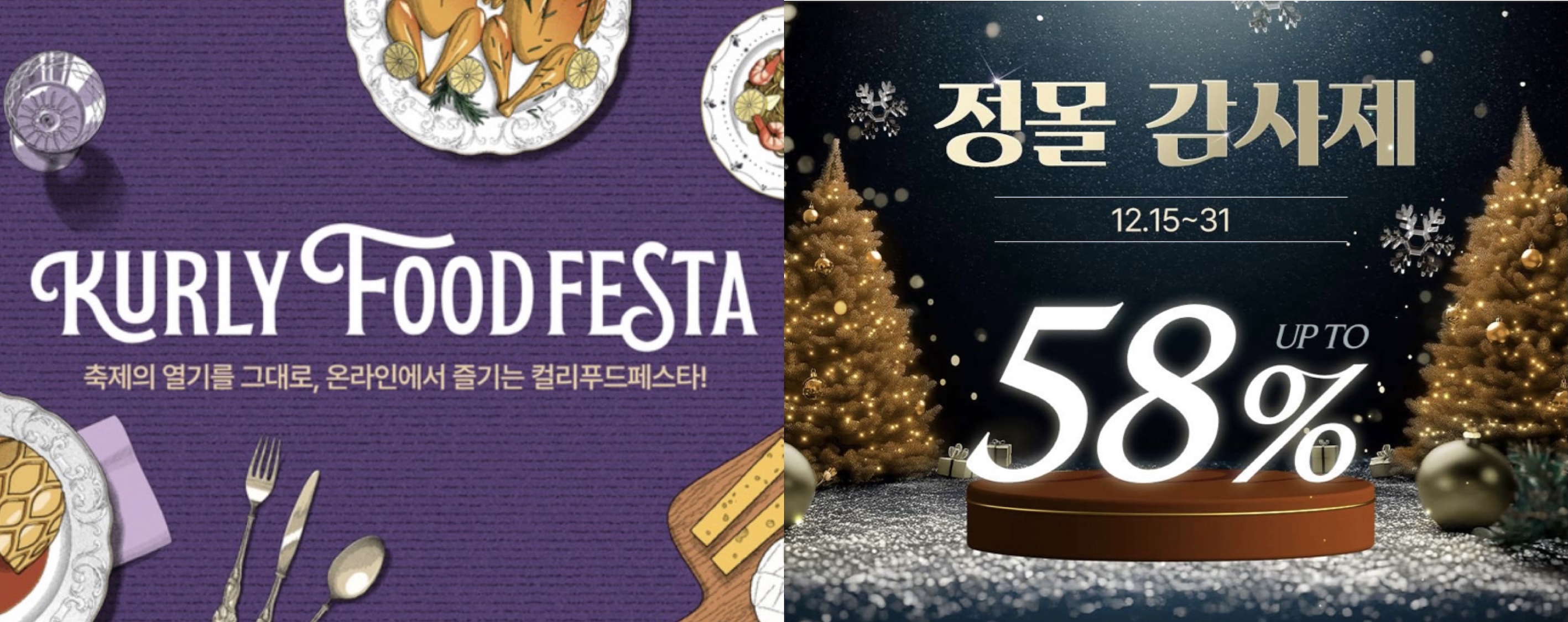 - 푸드 | 🍝 컬리가 오는 29일(월)까지 ‘컬리푸드페스타’를 열고 인기 브랜드 상품을 특가에 판매해요. 오는 26일(금)까지는 크리스마스 파티 음식도 할인해요.