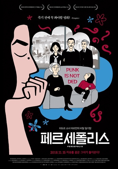 TMI를 하나 덧붙이자면, 이 책이 영화로도 제작되어 2007년에 개봉했는데 (위의 포스터를 참고해줘!) 이란 정부의 반대에도 불구하고 칸영화제에서 무려 심사위원상을 받는 영광을 누렸어. 모노톤의 색채와 그 속에 담긴 이야기가 마냥 어린 아이들보단 어린 Marjane이 겪어야 했던 괴리와 혼돈을 이해할 수 있는 어른들에게 더 큰 감동을 주거든. 또한 그러한 감동이 흑백 에니메이션이기 때문에 응집되어 폭발하듯 터져나오는 것 같기도 해. 책과는 굉장히 다른 이야기지만, 봐두면 오래오래 기억에 남는 영화로 추천할게 :)