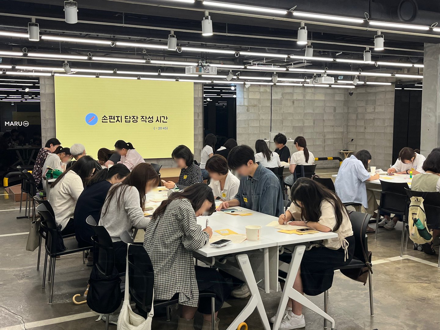 ํธ์ง๋ ํ ๋ฌ์ ๋ณดํต 2,500ํต์์ 3,000ํต ์ ๋ ๋ณด๋ด๊ณ ์์ต๋๋ค. ์ ๋ง ๋ง์ด ๋์ด๋ฌ์ด์. ์ ํฌ ์์๋ด์ฌ์๋ ๋ ๊ทธ๋ฃน์ด ์๋๋ฐ์. ํ ๊ทธ๋ฃน์ ์คํ๋ผ์ธ ๊ณต๊ฐ์ ์ค์ ์ ํธ์ง๋ฅผ ์ฐ๋ ๋ถ๋ค์ด๊ณ , ๋ค๋ฅธ ๊ทธ๋ฃน์ ์ฌํ์ผ๋ก ํธ์ง๋ฅผ ์ฐ์๋ ๋ถ๋ค์ด์์. ์ด 800๋ช ์ ๋ ๊ณ์ ๋ฐ ์ฝ 600๋ถ ์ ๋๊ฐ ์ฌํ์ผ๋ก ํธ์ง๋ฅผ ์จ์ฃผ๊ณ ๊ณ์ญ๋๋ค. ์๋ฌด๋๋ ์จ๊ธฐ ์ฐํธํจ์ด ์ ๊ตญ์ ์๊ณ , ํธ์ง ์ฐ๊ธฐ๋ ์ด๋์๋ ํ ์ ์๋ ํ๋์ด๊ธฐ ๋๋ฌธ์ ๋ค์ํ ์ง์ญ์์ ์ฐธ์ฌํ๊ณ ๊ณ์ญ๋๋ค.