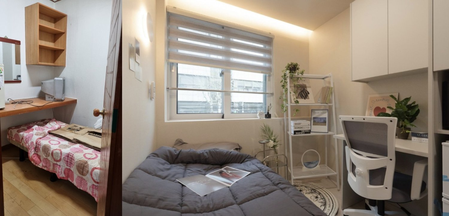 70๋ง ์์ ๊ณต๊ณผ๊ธ, ๊ด๋ฆฌ๋น, ๊ฐ๊ตฌ ๋ ํธ, ๊ฐ๋จํ ์์นจ ์์ฌ๊น์ง ํฌํจํ๊ธฐ ๋๋ฌธ์ ์ค์ง ์ฒด๊ฐ ์์ธ๋ 50๋ง ์ ๋์์. ์ด๊ฒ ๊ฐ๋ฅํ ์ด์ ๋ ๋ ธํ ๊ฑด๋ฌผ์ ๋ฆฌ๋ชจ๋ธ๋งํด์ ์ด๊ธฐ ๋น์ฉ์ด ์ ๊ฒ ๋ค๊ณ , ๊ณต๊ฐ ํ์ฉ์ ํจ์จ์ ์ผ๋ก ํ๊ธฐ ๋๋ฌธ์ด์์. ์ผ๋ฐ ์๋ฃธ์ ๋ฒ ๋๋ค์ ๋ณต๋, ์ฃผ๋ฐฉ, ํ์ฅ์ค ๋ฑ์ ํฌํจํ๊ณ ์๋๋ฐ, ์ ํฌ๋ ๊ณต์ฉ ์ฃผ๋ฐฉ์ ์ฌ์ฉํ๊ณ , ์ ๋ฐ์ฅ๋ ๋ฐ๊นฅ์ ์์นํ๊ธฐ ๋๋ฌธ์ ์ค์ ์ํ๊ณต๊ฐ์ ์๊ฐ๋ณด๋ค ๋์ ํธ์ด์ฃ .