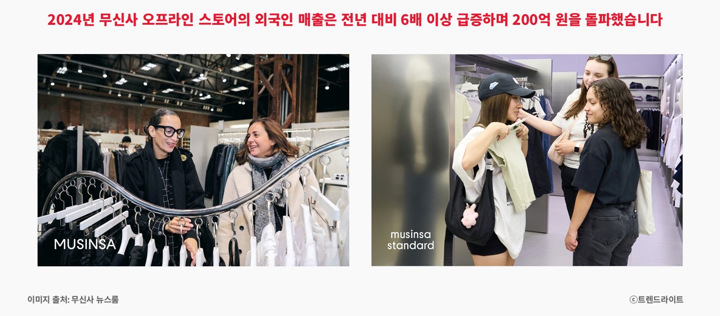 또 하나 흥미로운 건, 무신사가 국내에서 성공적으로 운영 중인 오프라인 사업 모델을 글로벌 시장에서도 그대로 전개하겠다는 전략이었습니다. 무신사의 오프라인 매장은 그 자체로 ‘테스트베드’ 역할을 하고 있는데요. 작년에 무신사 오프라인 매장에서 발생한 외국인 대상 면세 매출이 약 200억 원에 달했다고 합니다. 여기서 얻은 데이터를 바탕으로 어느 나라에서 어떤 상품이 통할지 미리 예측하고 준비할 수 있었던 거죠. 이제 이 성공 모델을 해외로도 확장하겠다는 계획입니다.