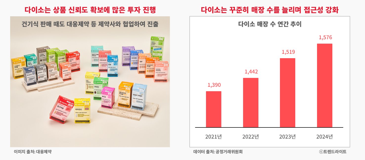다이소는 가격 경쟁력 이외에도 신뢰도나 접근성 확보에도 많은 노력과 투자를 하고 있습니다
