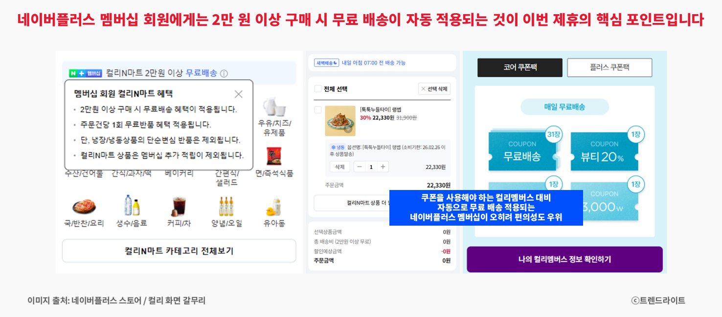 그리고 결과는 기대 이상이었습니다. 컬리가 네이버플러스 멤버십 회원에게 자사 ‘컬리멤버스’와 동일한 수준의 혜택을 제공하기로 한 겁니다. 대표적으로 2만 원 이상 구매 시 무료배송이 포함됐죠.