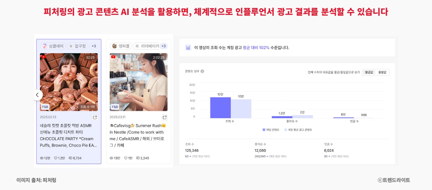 특히 오늘 이야기한 유튜브 PPL처럼 ‘누가, 어떤 방식으로’ 광고했는지가 중요한 캠페인일수록 더욱 빛을 발합니다. 단순히 인플루언서를 연결해 주는 것을 넘어, 광고 성과가 좋은 채널을 먼저 선별하고, 댓글을 분석해 콘텐츠 반응과 브랜드 언급, 긍·부정 여론까지 정리해 주기 때문에, 같은 예산으로도 훨씬 더 효과적인 집행이 가능하죠.