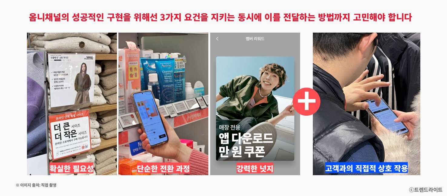 옴니채널 구현이 생각보다 어려운 이유는 결국 고객의 행동을 바꿔야 하기 때문입니다. 매장에서 QR코드를 찍고, 전자라벨에 스마트폰을 가져다 대는 행동은 결코 자연스럽지 않죠. 그래서 옴니채널을 제대로 작동시키려면, 매장 경험 전반에서 온라인으로 자연스럽게 이동하게 만드는 장치와 맥락이 먼저 마련돼야 합니다.