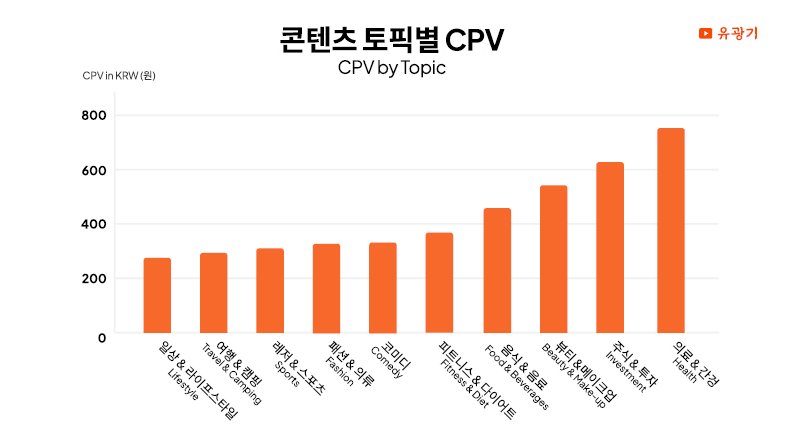 브랜드 신뢰도와 이미지를 쌓는 게 목표라면 → 의료·건강 같은 고CPV 토픽이나 강의·튜토리얼 포맷이 오히려 더 효과적!