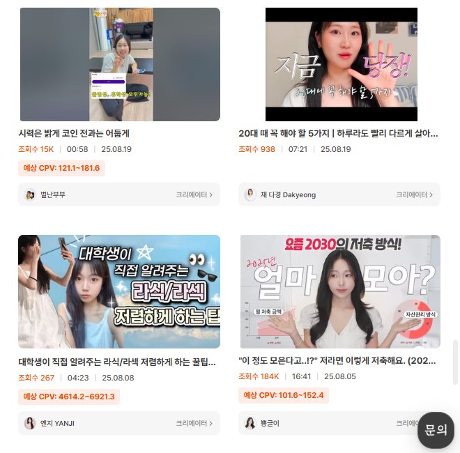 예를 들어 엔지(YANJI) 채널의 “대학생이 직접 알려주는 라식 저렴하게 하는 법”이나 뿡글이 채널의 “2030 저축 방식” 콘텐츠처럼, 20~30대 실소비층이 공감할 만한 일상 톤으로 메시지를 전달한 것이 특징입니다.
