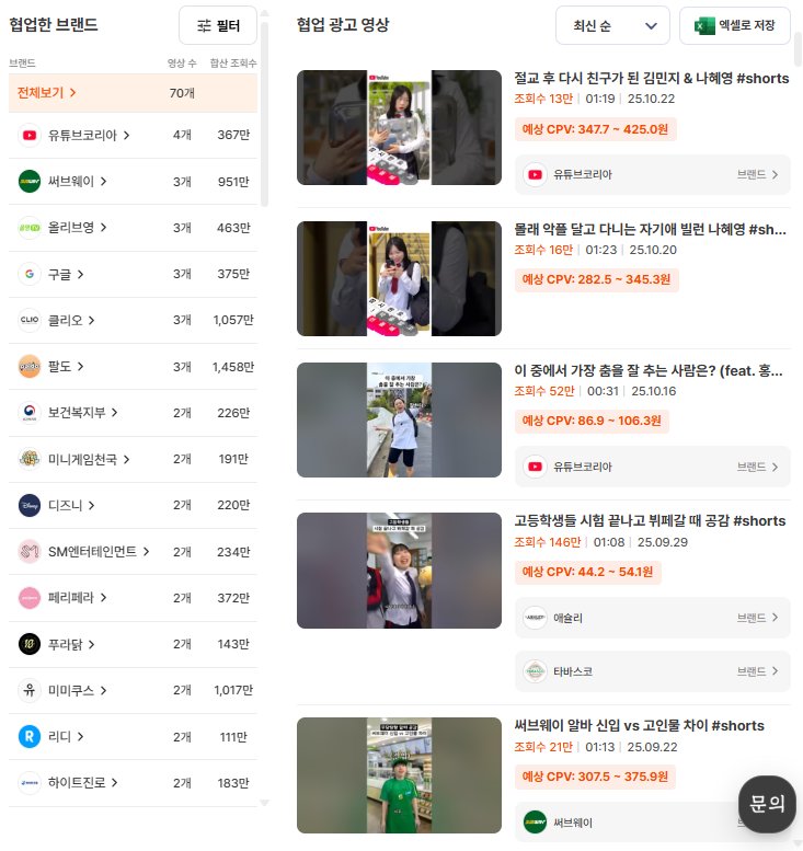 이제는 조회수보다 공감과 몰입을 만드는 채널, 그리고 광고 효율을 증명할 수 있는 데이터 기반 매칭이 중요해졌죠.