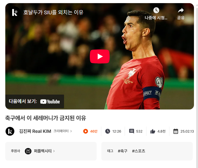 이런 결은 다른 PPL 콘텐츠에서도 반복됩니다. 예를 들어 축구에서 특정 세리머니 행동이 어떤 의미를 가지는지, 왜 문제가 되는지처럼 맥락을 알아야 이해되는 질문을 다루는 콘텐츠에서도 퍼플렉시티가 자연스럽게 등장합니다. 결국 퍼플렉시티가 선택하는 주제는 거창한 기술 시연이 아니라 사람들이 일상에서 실제로 부딪히는 궁금증과 애매함을 해소해주는 방향으로 보여주고 있습니다.