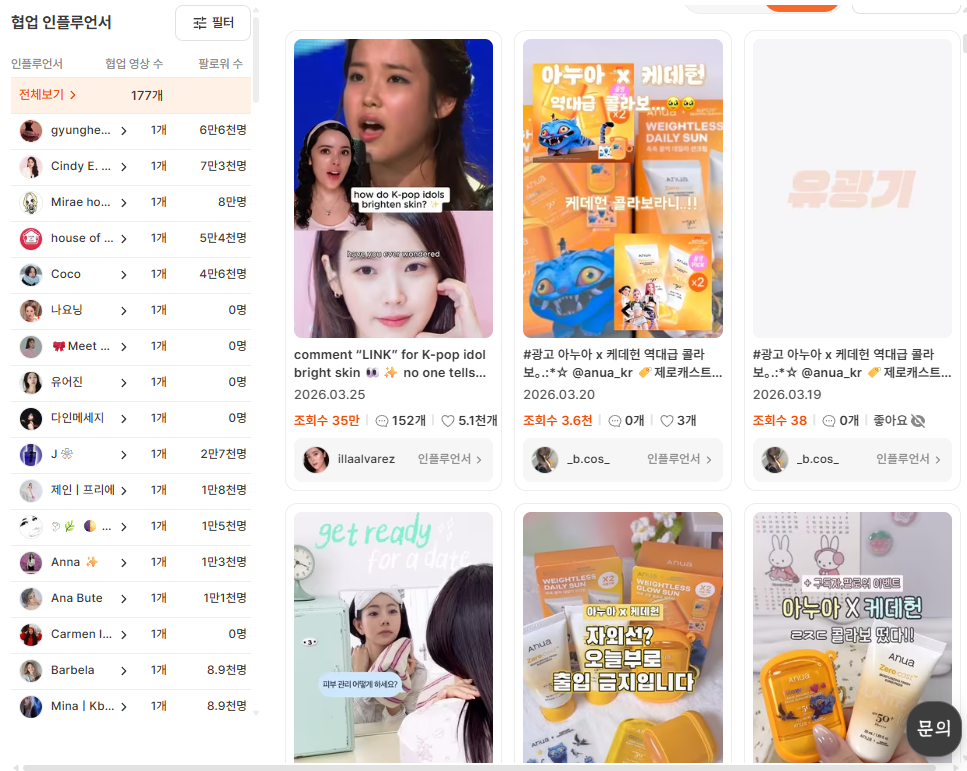 실제로 메디큐브의 협업 인플루언서 수가 30명 이상으로 매우 많고 다양한 규모의 크리에이터를 동시에 활용하고 있습니다.