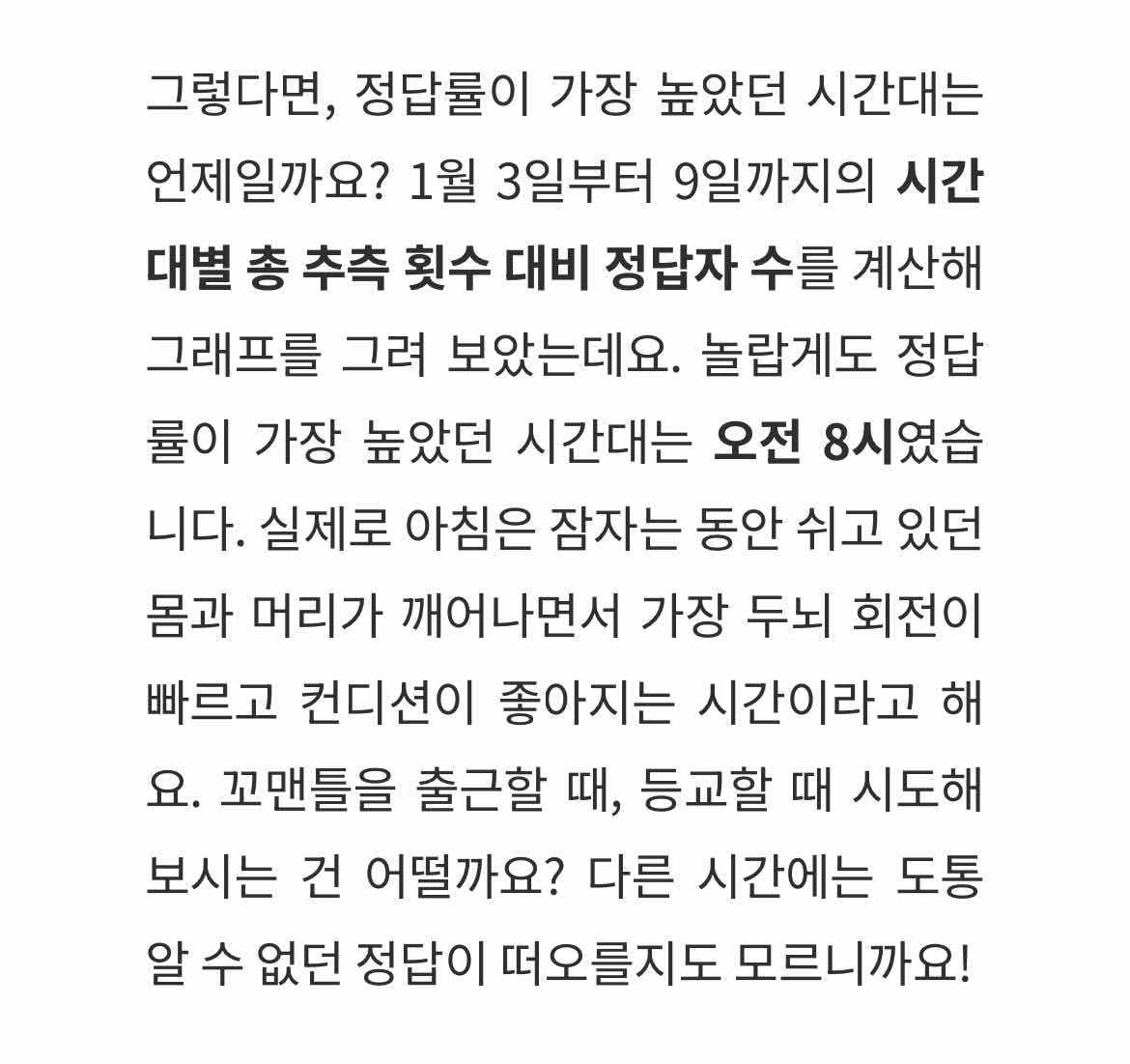 정답률이 높았던 시간대는 오전 8시였다고 해요.