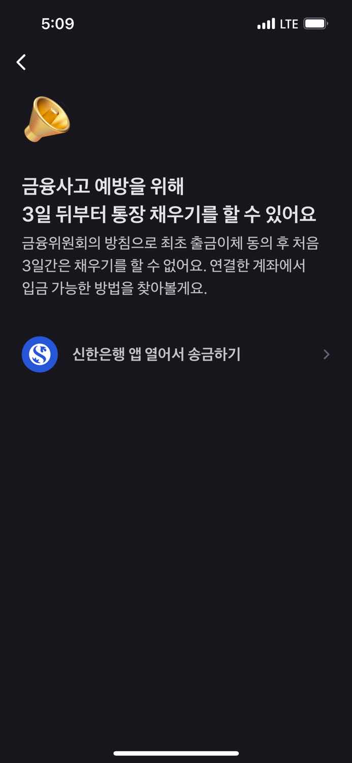 [ 19. 일상 속 따봉 : 토스뱅크 오픈뱅킹 이체 제한 안내 페이지 ]