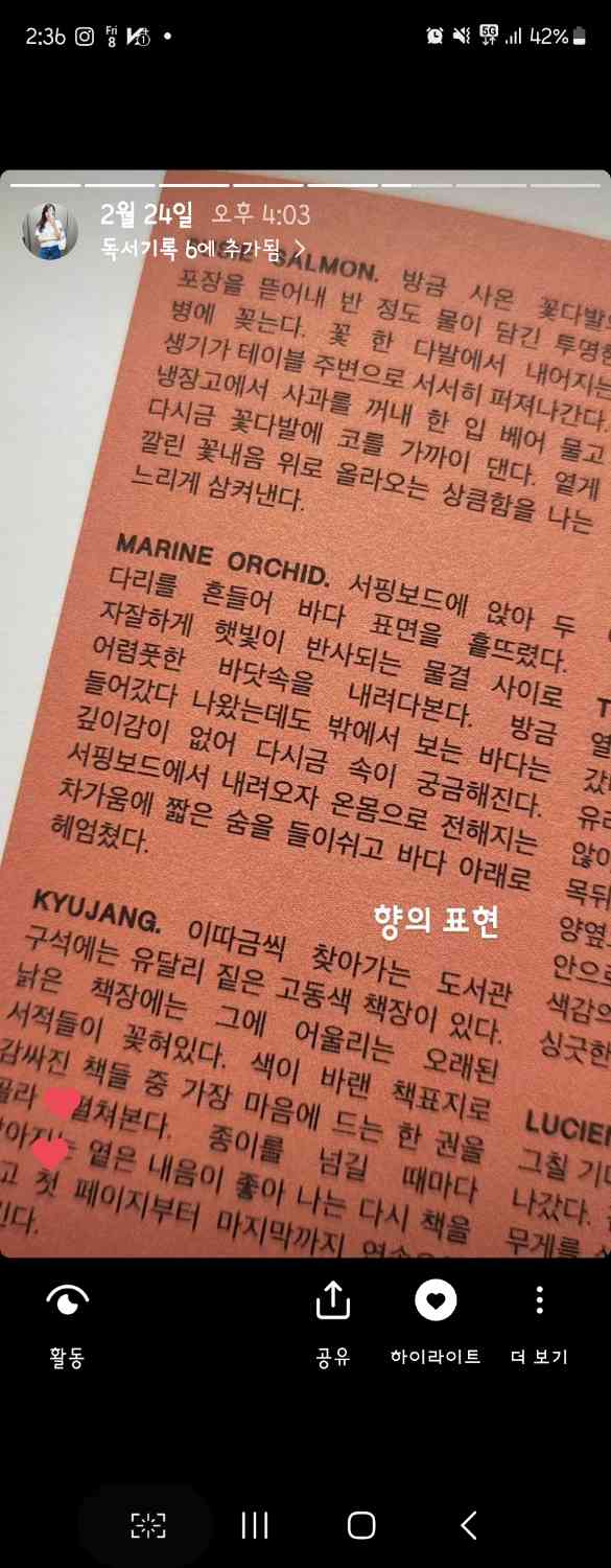 디테일 is Premium (2) 국내 브랜드 GRANHAND의 핸드워시를 뜯은 순간 바디에 감긴 띠지의 문구가 너무 인상적이어서 담아봅니다 향을 어떤 원료가 들어갔다가 아닌 아래 문구처럼 설명해요 "방금 사온 꽃다발을 반쯤 채워진 꽃병에 담는다 삶이 꽃에서부터 주변까지 서서히 뿜어져 나온다 냉장고에서 사과를 꺼내 한입 맛보고 다시 꽃향기를 맡는다 나는 천천히 꽃에서 시작된 생기를 음미한다" 가격을 떠나 고객과 만나는 하나 하나 접점조차 허투루 하지않는 디테일에서 프리미엄이 생긴다고 생각합니다 #GRANHAND