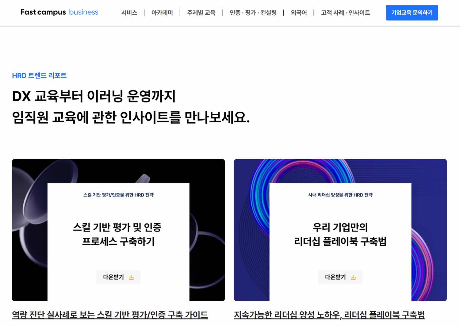 '์ ๋ฐฅ=์ธ์ฌ์ดํธ ๋ณด๋ฌผ์ฐฝ๊ณ '๋ผ๋ฉด ์ด์ด์ ์๊ฐํ 'ํจ์คํธ์บ ํผ์ค business'๋ ๊ณ ํ๋ฆฌํฐ์ ์ฃผ์ ๋ณ ๊ต์ก ์ํ๊ณผ HRD ๋ฆฌํฌํธ๋ฅผ ์ ํ ์ ์๋ ์ฌ์ดํธ์