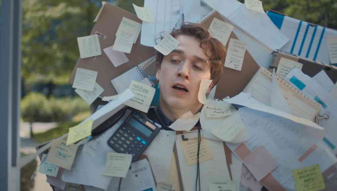 주인공이 바쁜 하루를 보내고 오피스를 벗어나지만, 수많은 업무들이 그를 붙잡고, 남자의 뒤에는 서류와 메모처럼 업무들이 끊임없이 따라붙는데요, 벤치에 앉아 킷캣을 쪼개는 순간 비로소 업무에서 해방되는 모습을 보여주고 있어요