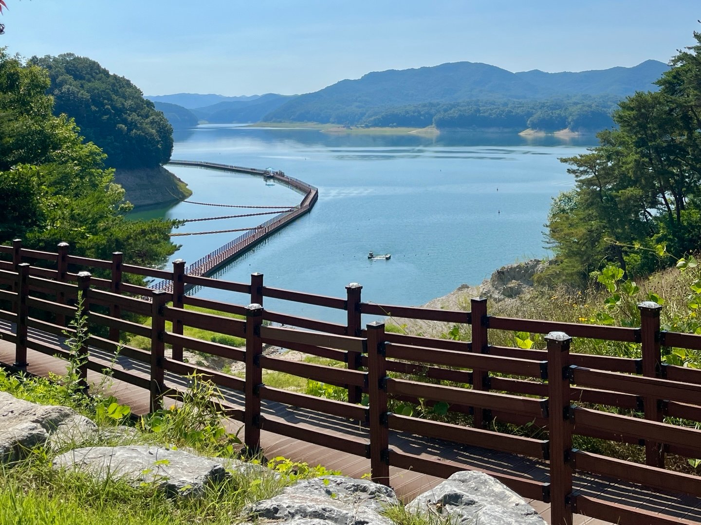 서울성곽길, 제주 올레길이 있다면 안동에는 '선비순례길'이 있어요! 선비순례길은 안동의 아름다운 자연 풍경과 관광지를 따라 걷는 안동 대표 여행 코스인데요.🚶 총 길이는 91km이며, 9코스로 나뉘어요. 저희가 걸은 '선성수상길'은 1코스에 포함된 약 1km의 짧은 길인데요. 길이 안동호 위에 떠 있어서 안동호 경치를 바라보며 걸을 수 있게 되어있어요! 예쁜 자연 풍경 속에서 걸으니 절로 힐링이 되었다는.💛