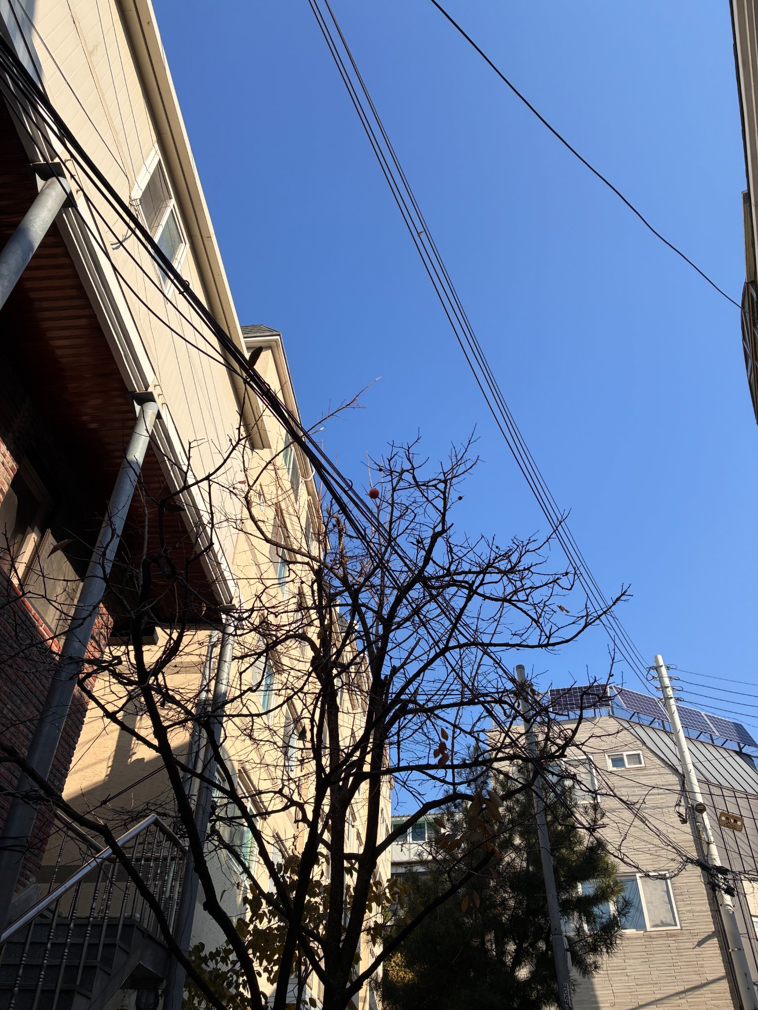 누군가 이런 생각 없이, 당연히 하나 남겨놔야지 하는 뇌리에 꽂혀있는 무의식으로 남겨진 '까치밥'일 수도 있지만, 각박한 도시속에서도 한국인의 '정'이라고 하는 것이 아직까지 남아 있음을 알게 되었습니다. 이사를 와서 경험한 감 나누기, 반상회, 까치밥의 발견은 아직도 우리에겐 '함께'라는 ‘정겨움‘이 남아 있음을 확인할 수 있었습니다.