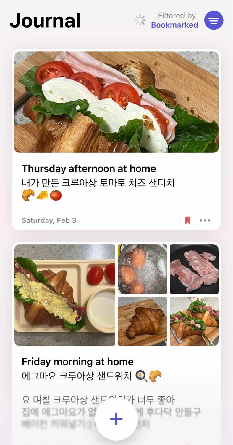 직관적이고 단순한 구성이며, 갤러리의 사진, 감상한 음악들을 기반으로 일기 쓰기를 제안하고 녹음, 위치 자료도 기록할 수 있어 짧은 시간을 투자해 순간순간을 기록하기 좋아요! 복잡한 앱이 불편했던 분들이라면 추천합니다!