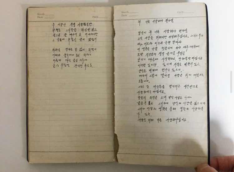 1976년, 막 스물이 된 엄마의 노트에는 사랑 시와 청춘의 흔들림 같은 구절이 가득하다. 노트 첫 페이지는 다짐과도 같은 글이 들어가기 마련인데, 엄마의 노트 첫 장은 김남조 시인의 ‘가고 오지 않는 사람’이 쓰여 있다.