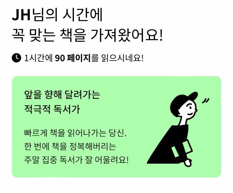 나의 독서속도와 그에 맞는 책은 뭘까? #독서속도테스트 📖📚링크 공유드립니다. #페이지랩 이라는 책을 사랑하는 사람들이 모여서 만든 실험실에서 제공하는 테스트입니다. 저는 '앞을 향해 달려가는 적극적 독서가'이고, 1시간에 약 100페이지를 읽는 속도라고 하네요! '출퇴근길 30분씩 하루면 다 읽는 책' '잠들기 전 20분, 일주일이면 다 읽는 책' '평화로운 일요일 낮, 하루면 다 읽는 책' 이렇게 각자 독서를 완결할 수 있게 시간개념을 넣어 추천해주니 신선해요 🤠 https://payge.kr/speed