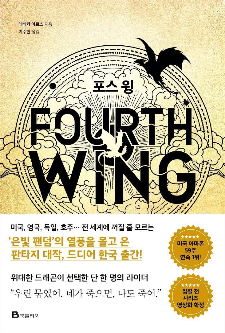 제목의 ‘포스 윙(네 번째 날개)’은 주인공 바이올렛 소른게일이 소속하게 되는 드래곤 라이더 부대의 이름이다. 학자가 되는 삶을 꿈꿨지만, 군사력이 일상을 지배하는 나바르에서 바이올렛은 결국 훈련소로 내몰린다. 바이올렛의 연약한 체격은 약점이지만 드래곤과 연결되는 순간 라이더는 저마다의 마법 능력을 깨운다. 그리고 바이올렛은 그 시작부터 특별했다. 두 마리 드래곤과 동시에 유대를 맺은 첫 라이더가 되었으니까.