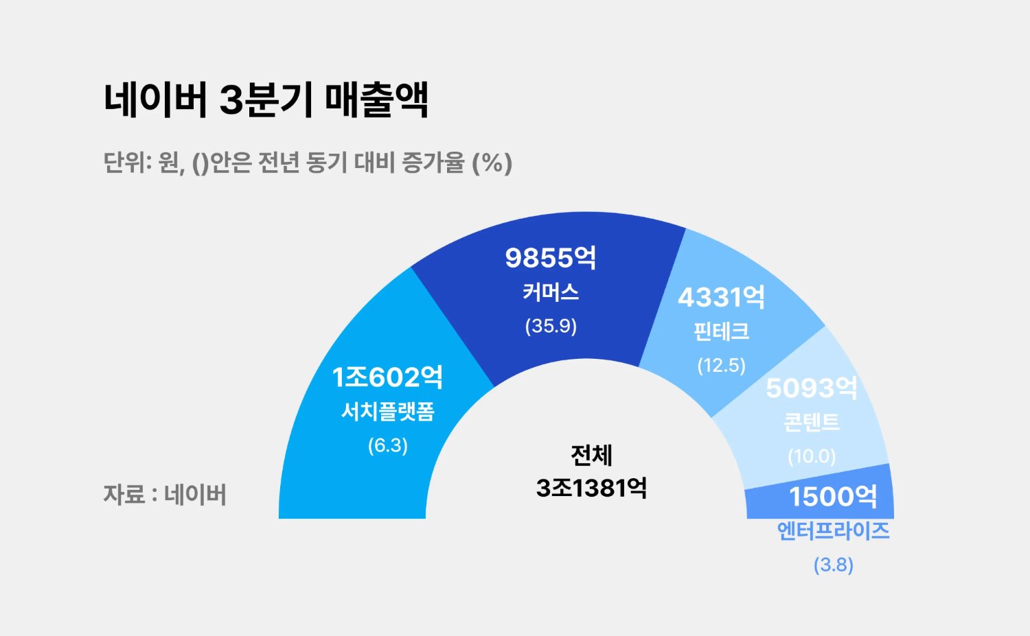 커머스 부문은 개인화 경험 고도화와 N배송 확대로 큰 폭의 성장을 보였어요. 스마트스토어 거래액이 꾸준히 증가했고, 멤버십 혜택 강화가 매출에 힘을 보탰어요. 네이버페이 중심의 핀테크 사업도 스마트스토어와 외부 생태계 확장에 힘입어 빠르게 커지고 있어요. 결제 규모가 지속적으로 늘며, 커머스와 핀테크가 함께 플랫폼의 핵심 성장 동력으로 자리 잡고 있어요.