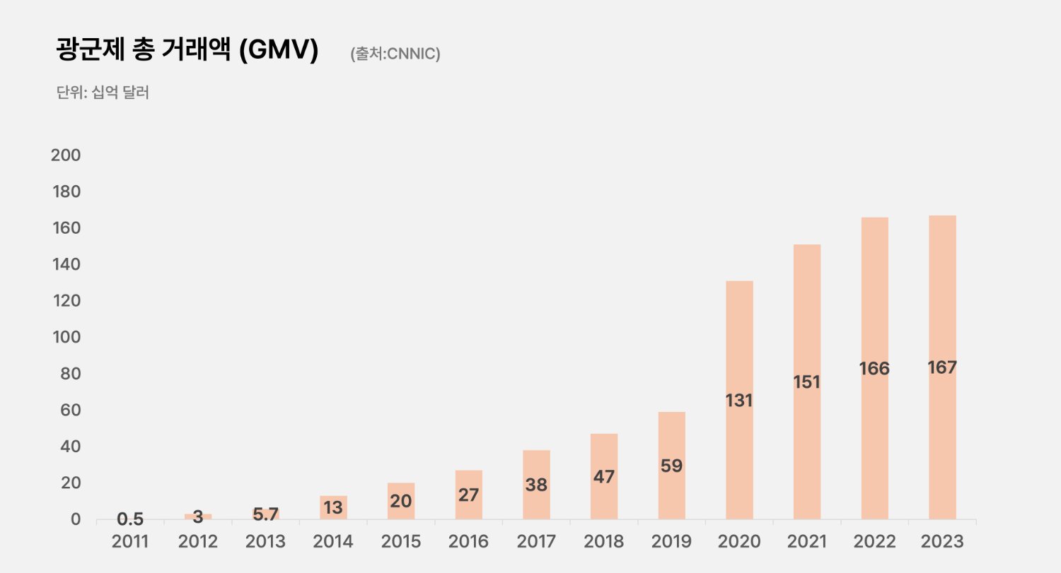 중국의 ‘광군제(솽스이)’는 11월 11일의 ‘11·11’에서 출발해 2009년 알리바바가 시작한 단 하루 할인 행사였어요. 이후 미국의 블랙프라이데이~사이버먼데이보다 더 큰 매출을 기록하며 세계 최대 쇼핑 이벤트로 성장해왔어요. 광군제는 중국 내수 경기와 소비심리를 확인할 수 있는 가장 직접적인 지표로 여겨졌어요.