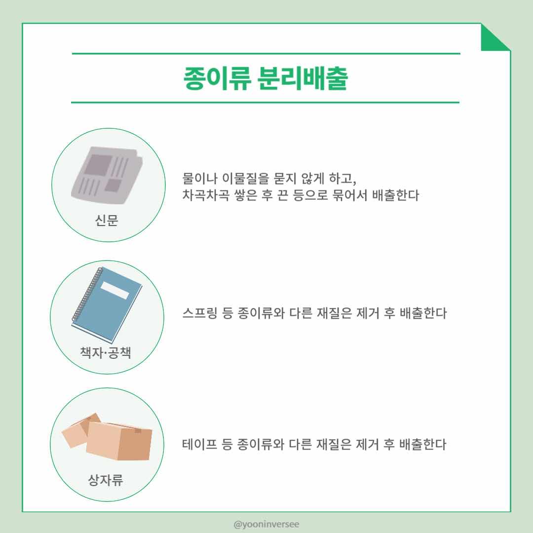 1. 신문지: 신문지는 묶음으로 정리하여 배출해야 합니다. 신문지에 기름이나 음식물 쓰레기 등이 묻지 않도록 주의해야 합니다.